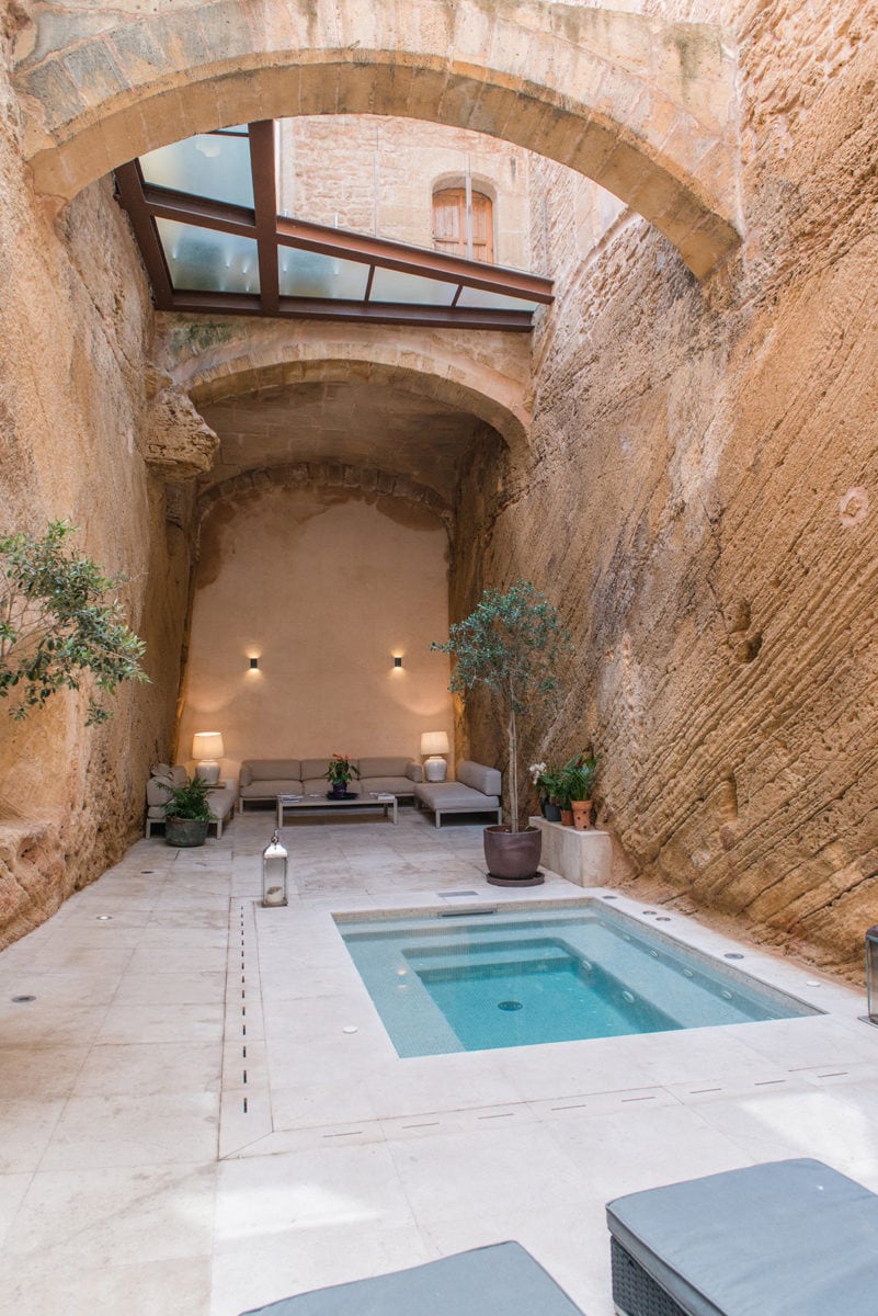Can Mostatxins is a small chic hotel right up there too. Until fairly recently, the building was a total wreck but has been painstakingly restored and turned into something very special. It has a huge, peaceful, outdoor chill-out area sunk into the bedrock. There’s also a big spa pool where you can relax and watch the stars at night. The original hotel now has a sister building next door which houses the breakfast room and has its own spa pool.