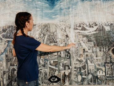Sally’s transformative artistic journey: a labyrinthine narrative painted on canvas, untangling life’s mysteries.