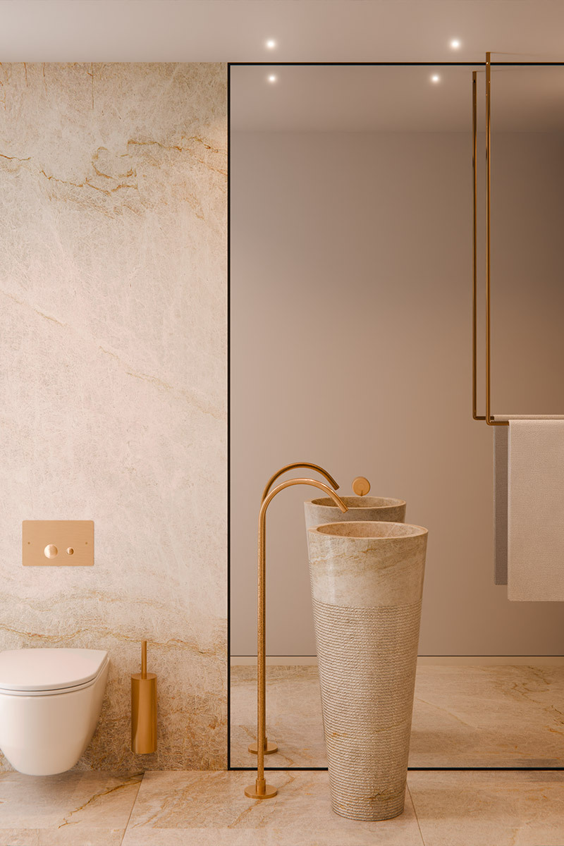 The private spa exists within a property geared towards wellbeing. “This home is an ode to enjoyment,” asserts Rodríguez. Also equipped with a wine cellar and cinema room, the aim is for each space to be experienced with maximum pleasure. Taking a tour through the different rooms in this sleek Bendinat build, featuring two floors and a basement, is an indulgent treat for the senses.