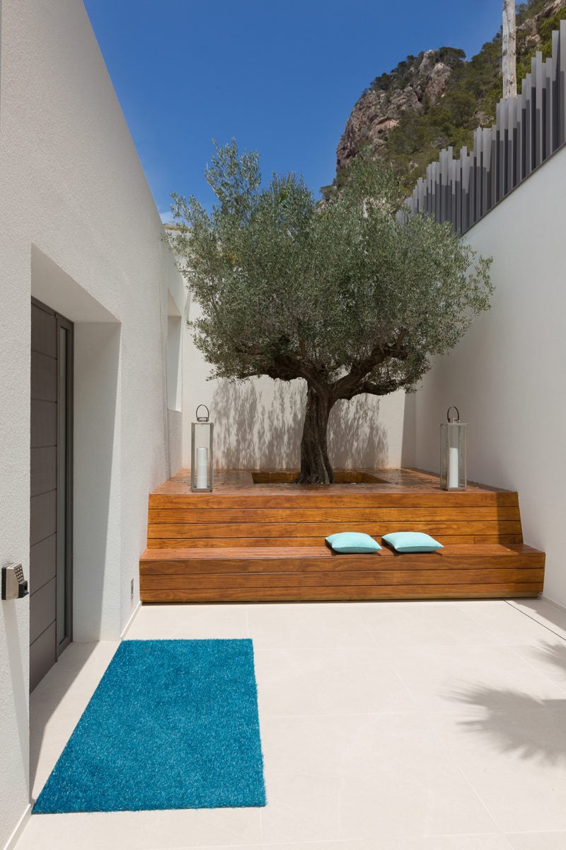 Absolute privacy enfolds the terraces, a scene made for late-night lounging sessions with their cool white furniture and infinity pool reflecting the stars