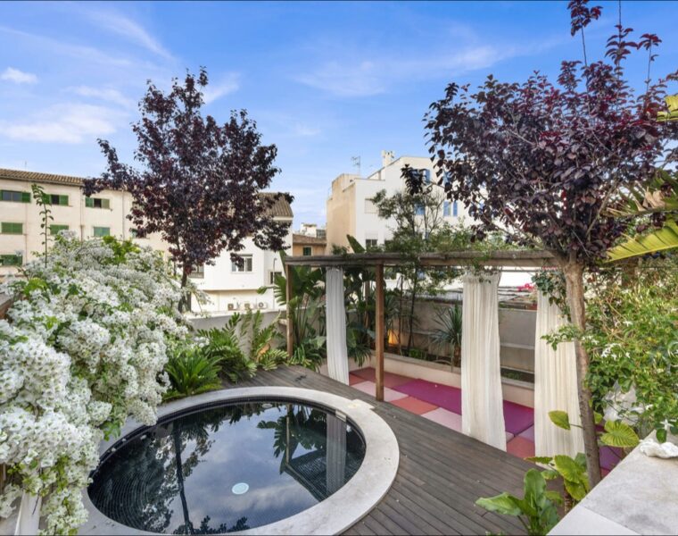 A stunning designer duplex in Palma’s old town, featuring a private terrace with a jacuzzi and a stylish, light-filled interior.