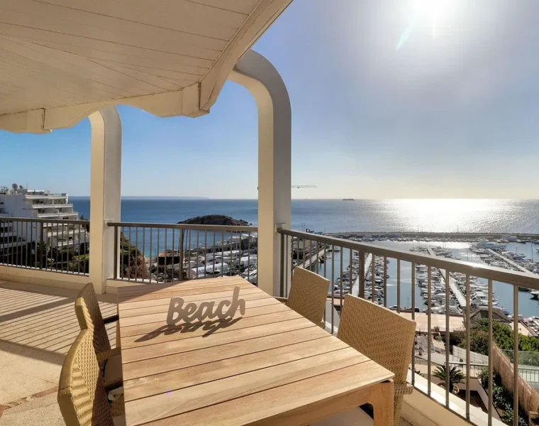 Refined duplex penthouse in Illetas featuring panoramic sea views, spacious interiors, a large sun terrace, and access to the exclusive amenities of the Anchorage Club.