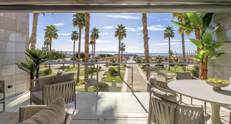 Elegant ground-floor apartment with panoramic sea views, rooftop pool, private parking and terraces, near Club de Vela.