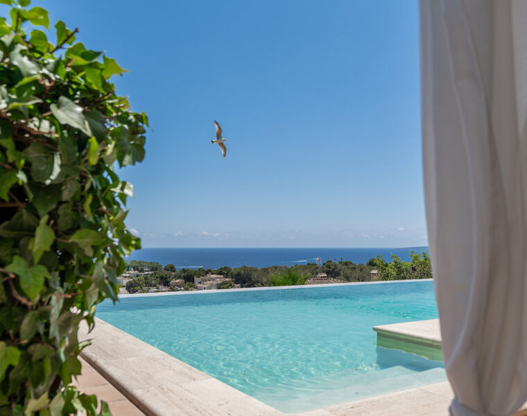 This luxury villa in Santa Ponsa offers breathtaking views, a private pool high-end finishes and is just minutes from the beach.