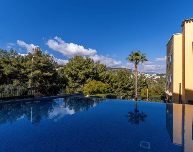 Modern apartment with stunning views of the sea and Bendinat in the exclusive enclave of Panorama. The property features a private pool and private parking.