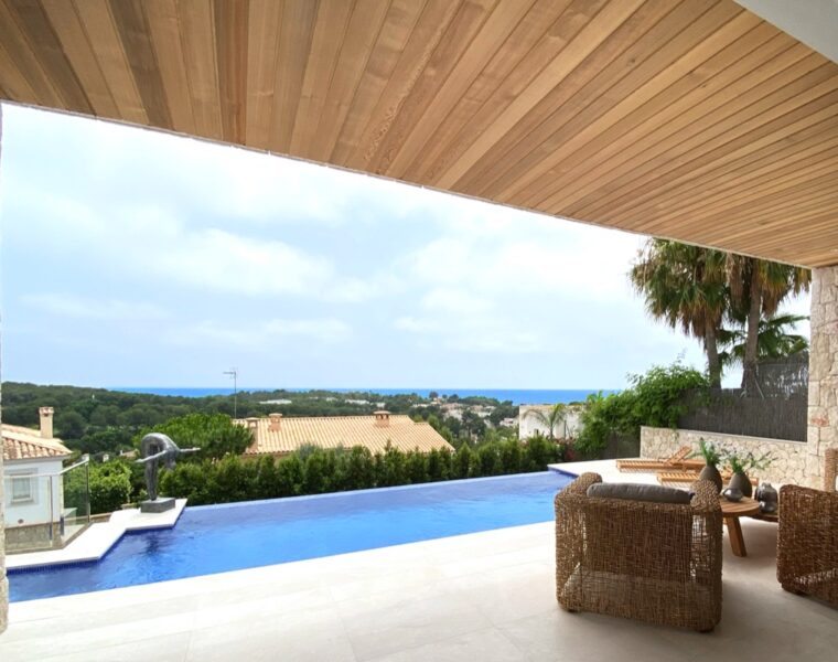 Beautiful 3-bedroom sea view villa for sale in Costa d’en Blanes with guest apartment and pool overlooking the mountains and sea.