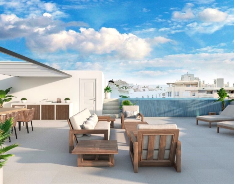 This brand-new penthouse for sale in Palma comes with spectacular views of the Mediterranean Sea and a beautiful rooftop pool.
