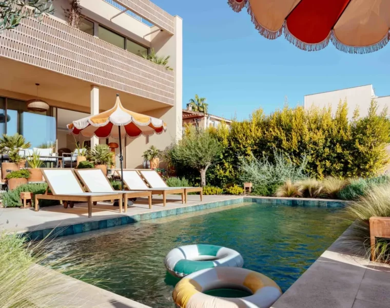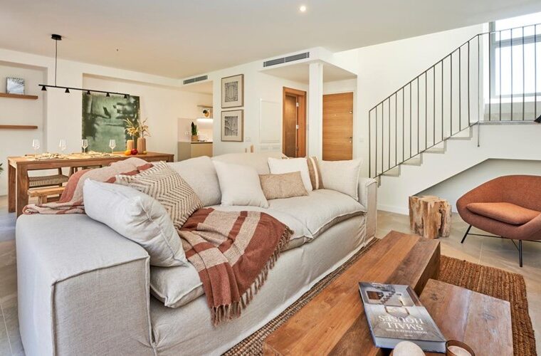 This luxury townhouse in Santanyí combines elegant interiors, a saltwater pool, and a rooftop terrace for ultimate Mediterranean living.
