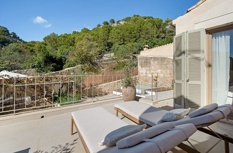 A beautifully restored townhouse in Sóller, blending heritage and contemporary luxury, offering mountain views and a serene courtyard with pool.