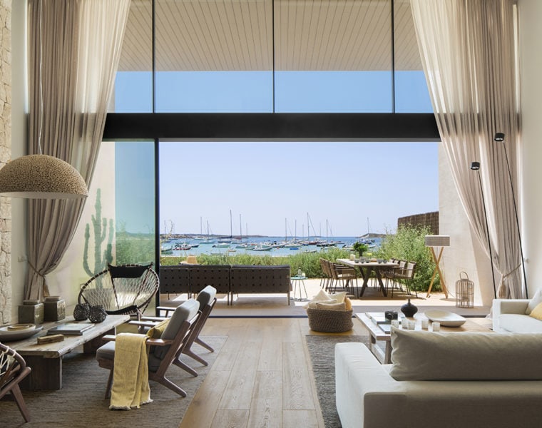 Seasoned interiors firm, Mobles Riera, create distinctly 21st-century interiors with natural materials in Cala Llamp luxury villa.