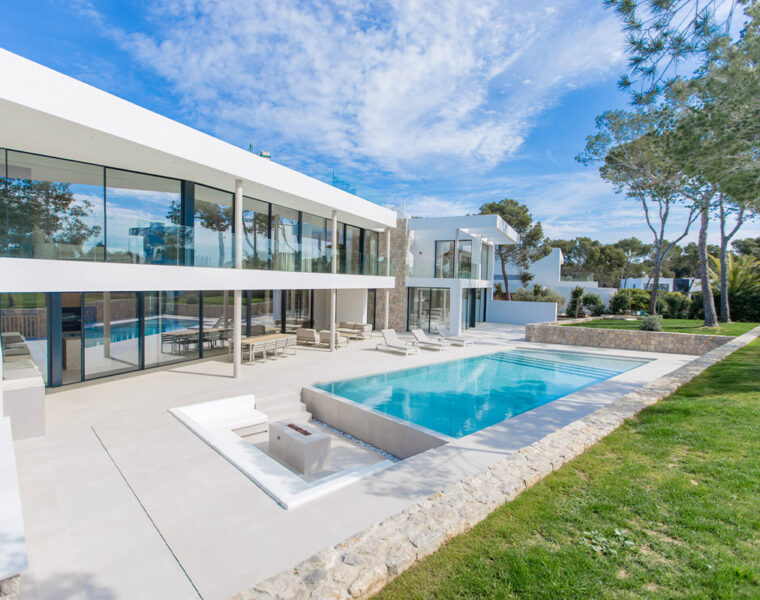 Outstanding new build, ultra modern villa for sale in Santa Ponsa, in firstline position on the golf course, with pool, indoor spa, gym, cinema and cutting edge technology