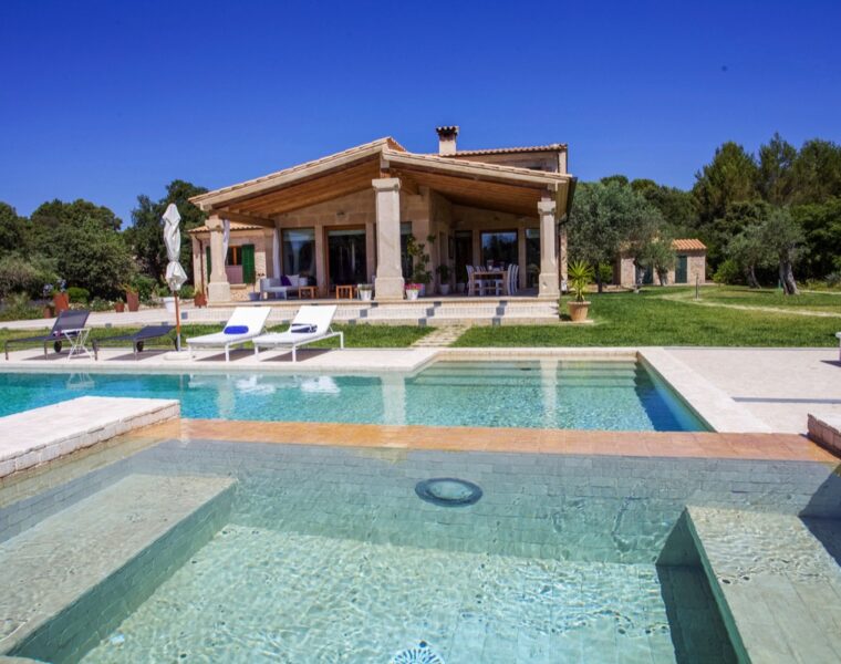 This 5-bedroom newly built finca for sale in Santa Maria is a property not to miss with its private pool, wine cellar and huge garden.