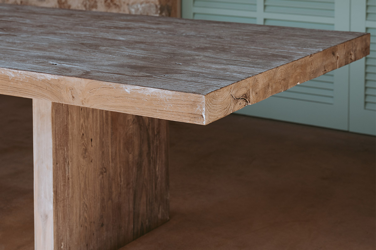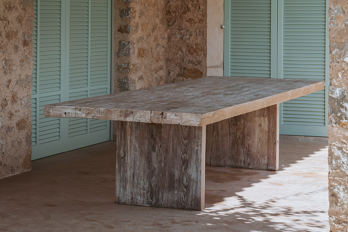 The Big Table Studio sources a lot of their wood, like teak and suar from Indonesia, where suar grow up to 28 metres tall and two metres wide. This allows hefty tables to be made from a single piece, although, the table is always assembled and finished here in Mallorca. The studio has its own workshop in Consell, where their master carpenter carefully customises the product to the client’s specifications. “There is always a Mallorca connection,” Marc tells us, “Whether it’s entirely produced here in our workshop or ultimately treated and finished.”