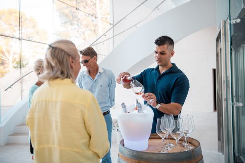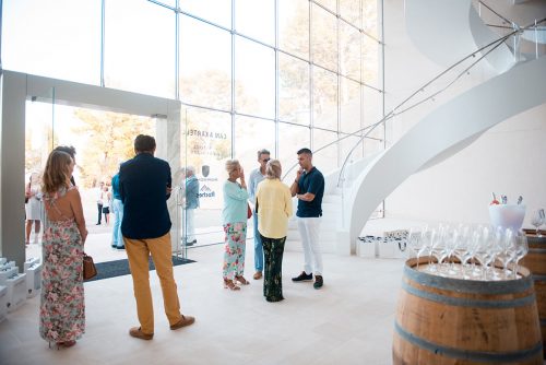 Speeches by the clinic’s representatives María Gil and Nigel Franklyn welcomed the select crowd, before a tour of the impressive bodega. Upstairs guests enjoyed cocktails and inventive appetisers by Svenja of Bellaverde Vegan & Vegetarian Restaurant, plus video presentations by Clinique La Prairie and the Les Roches-Global Hospitality Education.