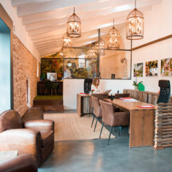 Lucie Hauri had the undoubtedly extraordinary idea of developing a creative meeting centre, themed on real estate, in the heart of SantanyĆ a few years ago. At that time, āEast 26ā was not much more than a huge property for sale and in desperate need of renovation. āAfter the fourth or fifth visit of potential buyers, I had the idea to set up my own project here,ā Lucie recalls. Together with her colleague John Peeters, who specializes in project management, the basic concept for āEast 26ā was developed. Under the umbrella of the project, various companies were to offer their services in real estate, decoration and design. During the four-year gutting of the building and subsequent restoration, Lucie already started to find potential partners for āEast 26ā. āThis was not an easy task – after all, the approach was to offer something to our future visitors, which corresponded to our own high-quality requirements.ā