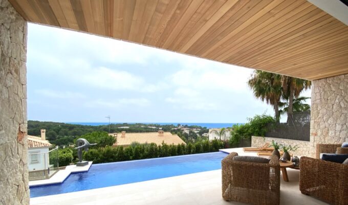 This modern 4-bedroom villa is located in sought-after area of Bendinat in the southwest of Mallorca (just 25-minutes away from Palma). It is located on a lush green hill overlooking the Mediterranean Sea.