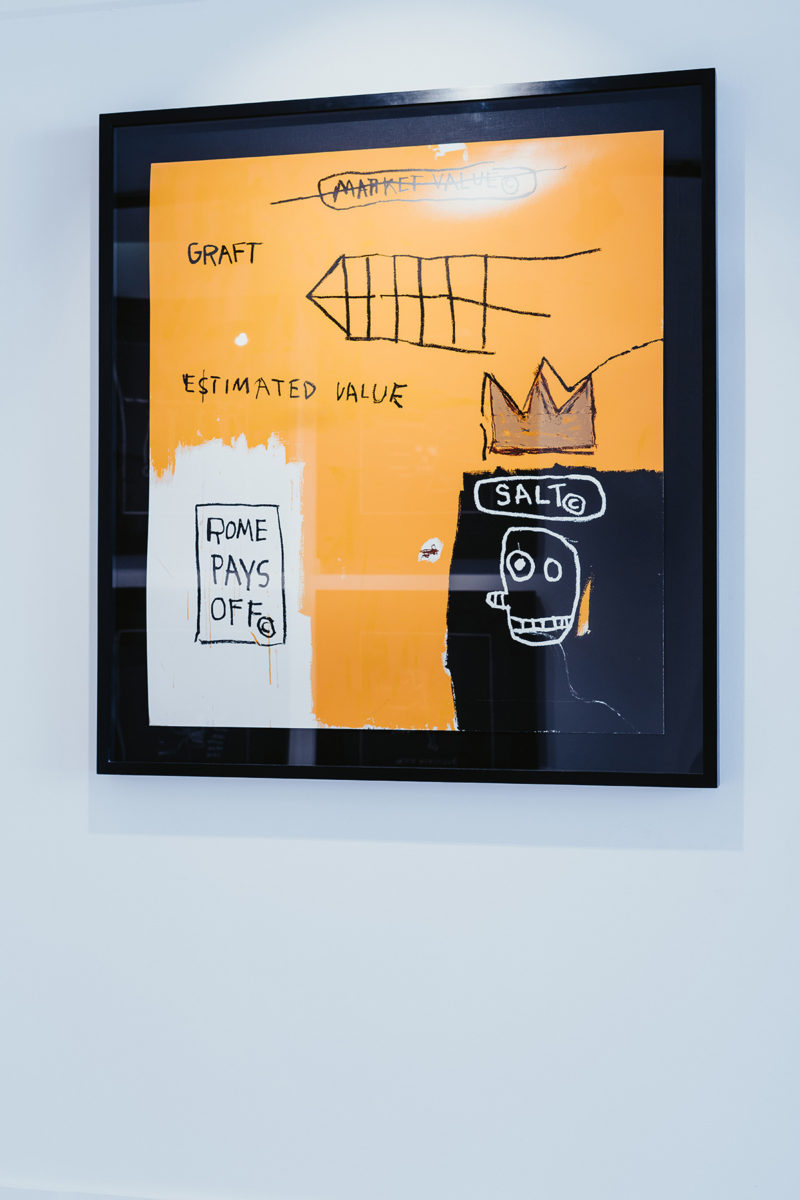 Basquiat’s work is well-known for its for its intense colours and expressive brushstrokes, characteristic of the Neo-Expressionist art movement. His love for childhood cartoons and the wildness of his youth is reflected in his paintings.