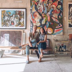 A lemon-yellow mailbox bearing the artist’s signature confirms we are knocking on the right door, and we are soon met by a tall, lean figure with square jaw and light caramel tan, blue eyes flashing behind horn-rimmed glasses. Grason greets us with a warm smile, and invites us inside.
