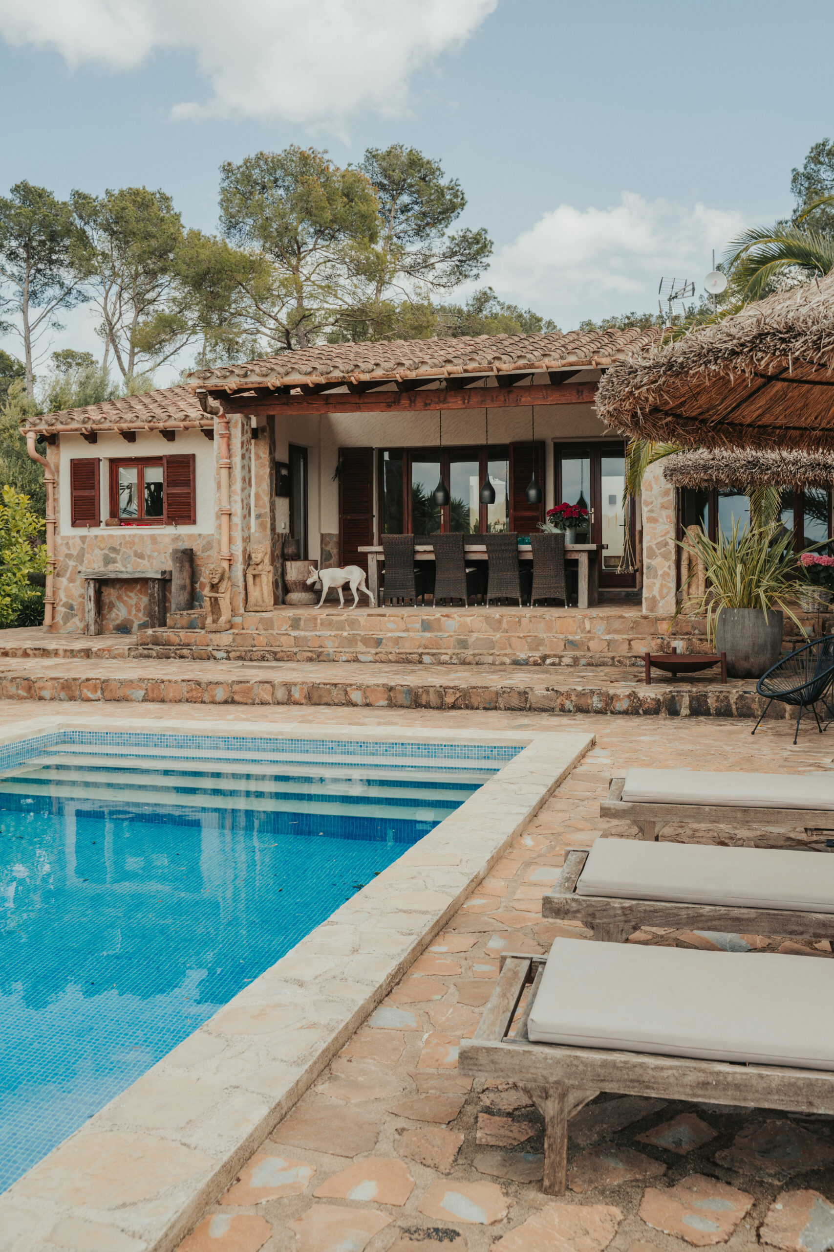 The pièce de résistance is the living room. Lillian wanted to bring the outside in. You can open an entire wall of windows onto a huge terrace. You must admire anyone who sands down the multiple wooden beams of a terrace roof. The view takes you right across to the Tramontana Mountains. The garden slopes down so the view is uninterrupted. It serves as a reminder of the mountain views. The significance of this renovation project for its owner’s journey to restore her health is not lost. As Lilian recounts the heartfelt story of how she transformed her home brush stroke by brush stroke, it seems like a reflection of the deep healing taking place inside herself. “It just came together,” Lilian reflects.