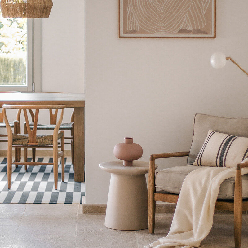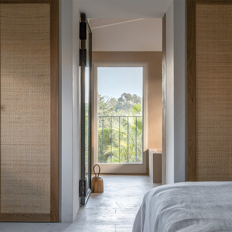 Reflecting the natural surroundings, they employed materials such as oak, rattan and bamboo, to also bring character and intimacy to the home: “to create a space that would feel welcoming from the moment you step into the house,” Anna explains. Walls were painted in blanco roto to bring warmth into the interiors, while they applied a special abrasive abujardado technique to existing stone tiles to give them a softer, more rustic feel.