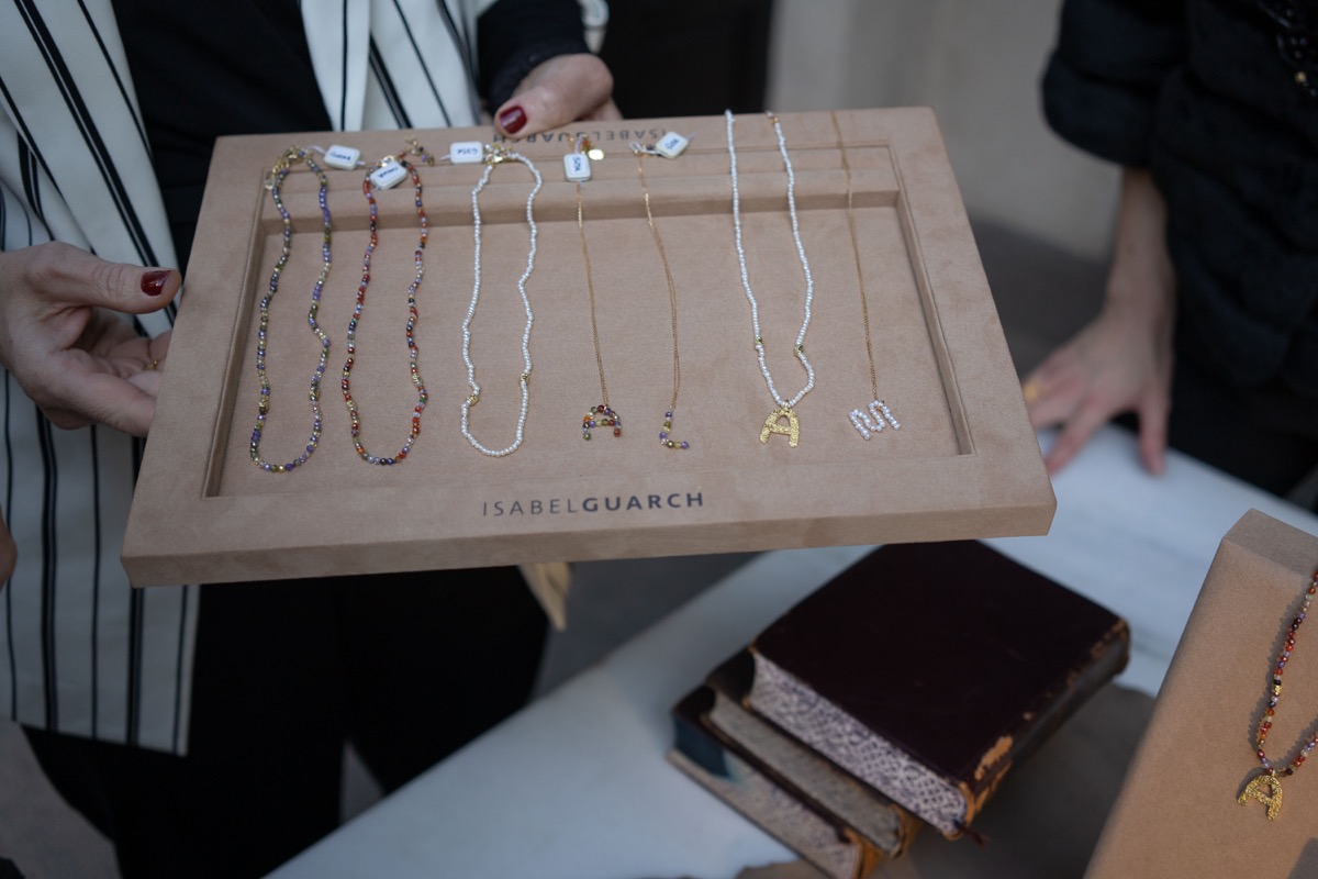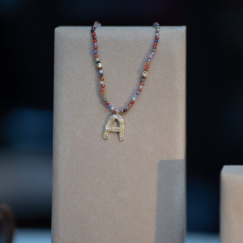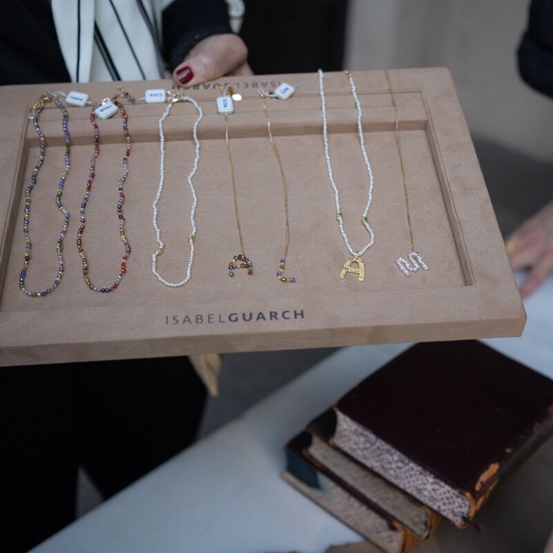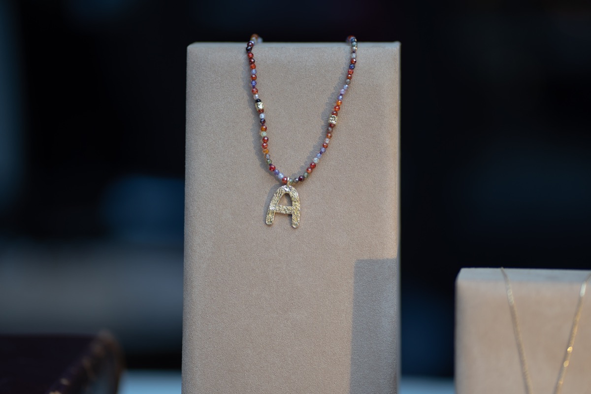 The collection includes beautiful gold necklaces in a choice of letters (A-Z) as well as variations in turquoise, pearls, multicolour and tricolour. In classic Guarch style, the necklaces are infused with precious stones and gorgeous pieces of colour.