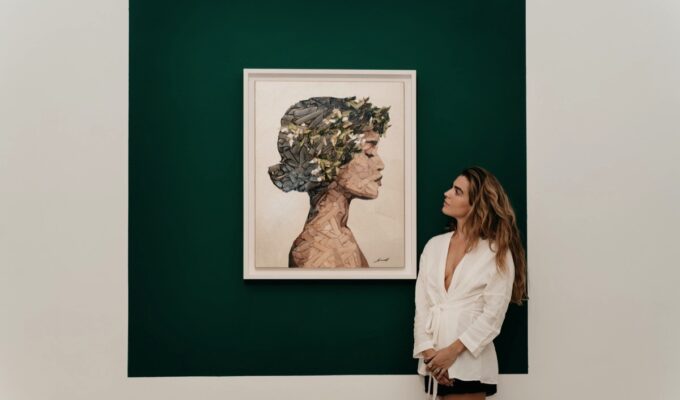 Her pictures come in all sizes and her palette ranges from natural tones to vibrant pinks and reds. There’s no need to feel daunted by the choice, however. “My paintings pick their buyers,” she reassures us with a smile, “You just know when it’s right.” Her pieces are perfect for those who are weary of glitz, and who are seeking something with a bit more soul to deepen the welcome and balance of their home.