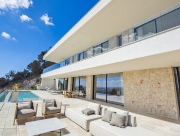 Newly built villa in Port Andratx with four en-suite bedrooms, panoramic harbour and sea views, swimming pool, terraces, and complete privacy.