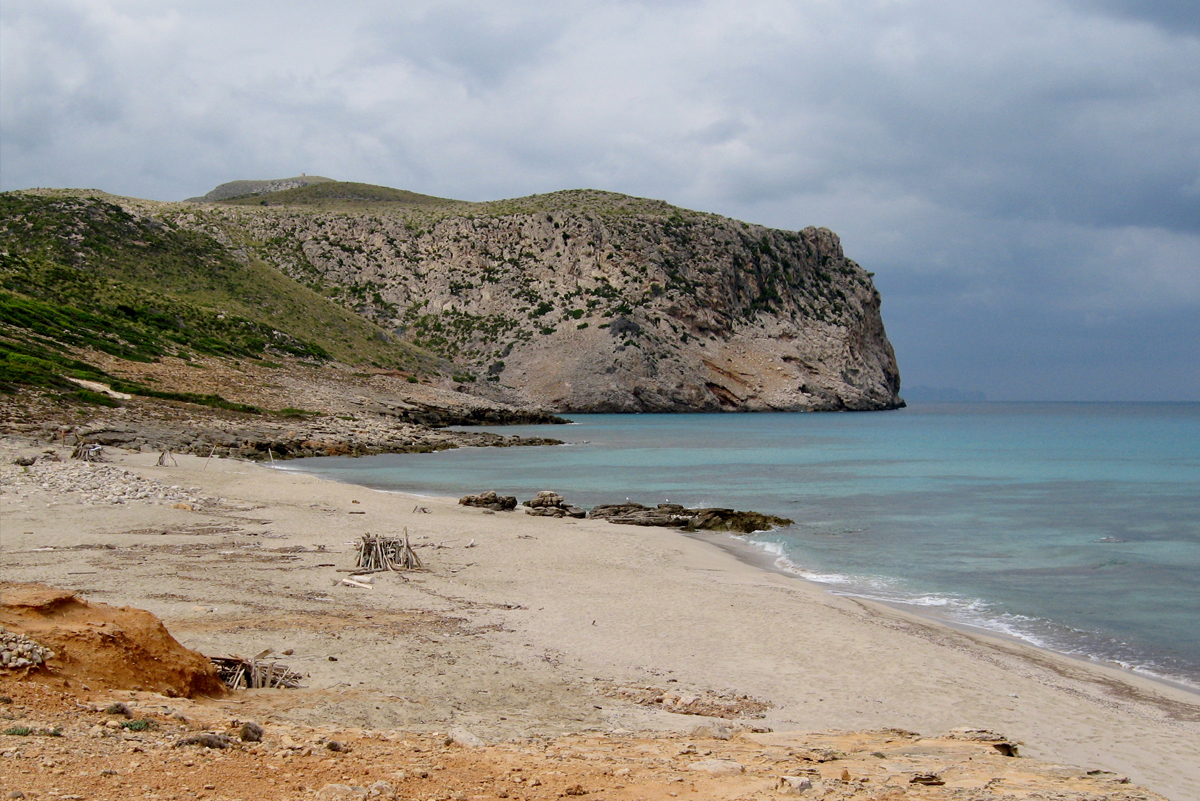Be prepared for at least a one and half hour’s hike to this sandy virgin beach situated 12.5 km north of Artá in the Serra de Llevant Nature Reserve. One option is to park just beyond the petrol station and join the coastal route GR222 from Cala Estreta. The hike passes the beautiful and remote beach of Cala Matzoc and the ancient lookout tower of Torre d’Aubarca. When you reach the paradisiacal Playa de Sa Font Celada, it means you are only 500 metres away. The arid summit of Puig de Sa Porrassar looms to the north. Today it enriches the magnificent scenery, but in the 13th century it may well have provided refuge for the Moorish resistance.