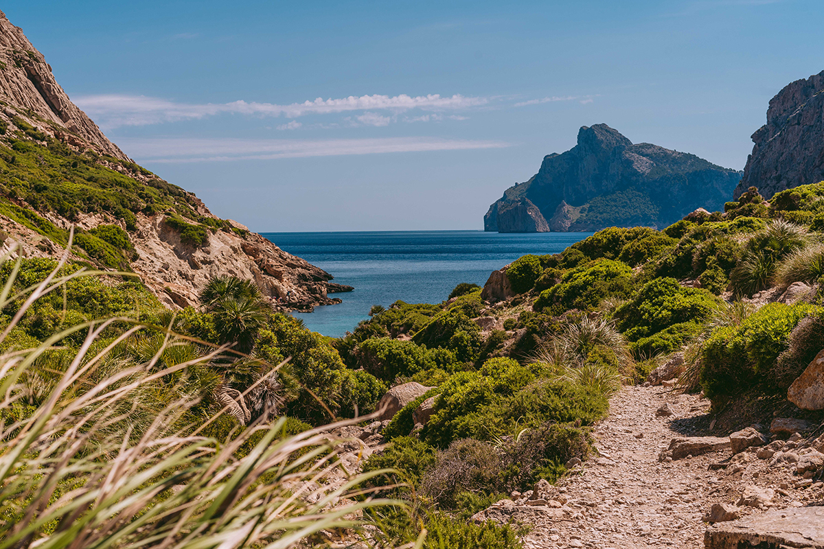 Wild goats may find you at this spectacular pebble beach 5km north of Port de Pollensa. It’s certainly one sure way to escape the crowds. The hike from the private finca of Possessió de Sa Boquer to the beach takes about forty minutes and requires firm shoes. Loose stones add to the challenge which the tremendous views and a cooling swim will make up for. Limestone cliffs frame the bay and on the horizon the Colomer islet, so admired by the crowds at El Mirador de Ses Colomers, will be exclusively yours to feast your eyes upon.
