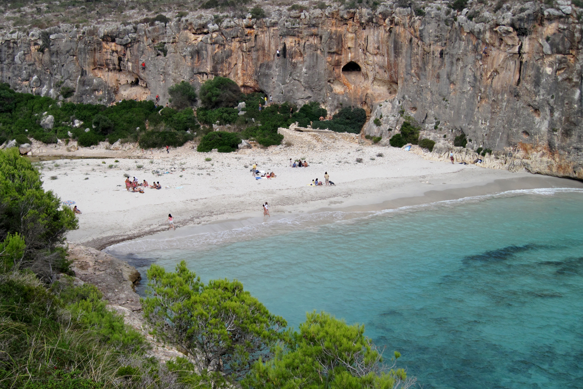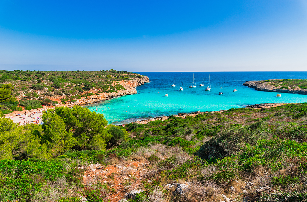 Keeping this bay a secret is difficult since it enamours everyone who visits. It’s situated 13km from Manacor, between Calas de Mallorca and Cala Romántica. Snorkelers and rock climbers love its cliffs and caverns. A path to one side of the beach leads to the rocky cove of Caló Blanc where the water sparkles turquoise beside a staggering underwater cave. A natural rock arch formation is another attraction, providing a striking backdrop for photos. There is no official parking and it will take roughly twenty-five minutes to walk from the main road. The rough stony track passes beside a sign for private property. Continue on fearlessly through forest until you reach the dunes.