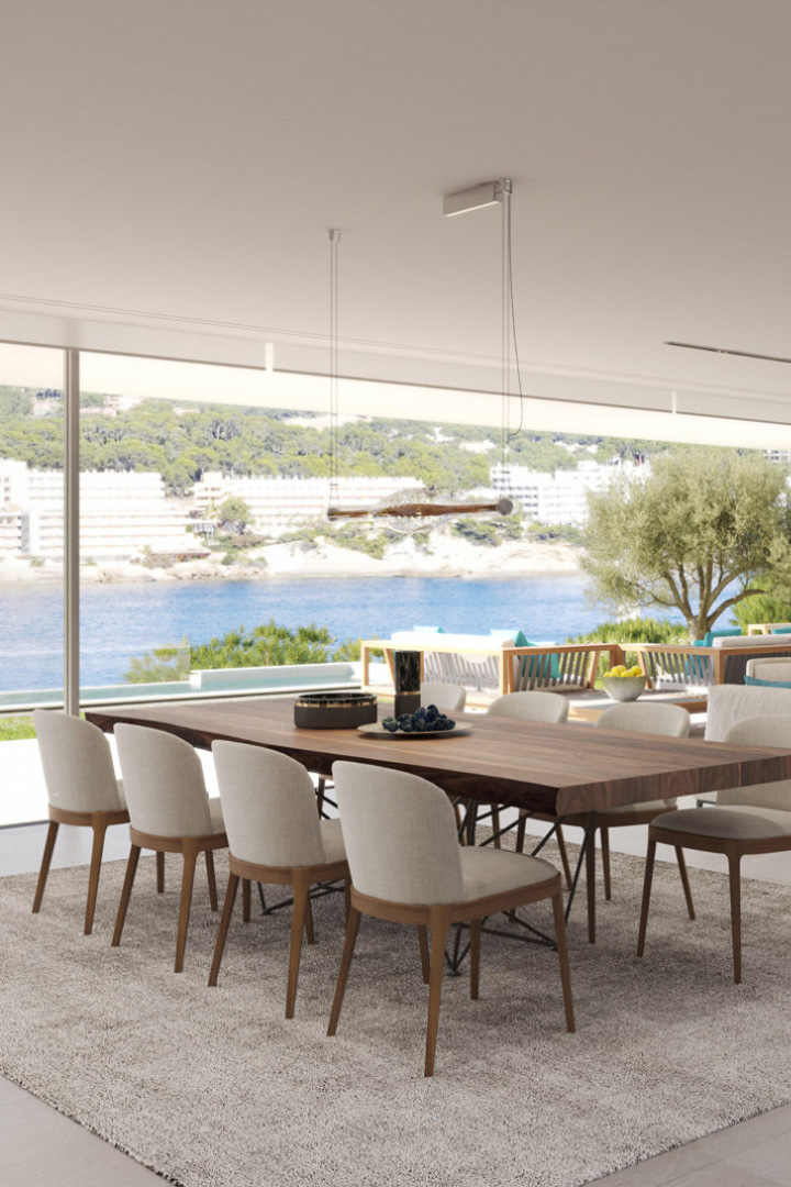 This open-plan sea-villa has been designed for high-end, luxury living in Mallorca. The interior décor has been tastefully put together in a minimalist and contemporary manner. There is a large fully-equipped kitchen, library and storage room. From all areas, there are amazing views to enjoy.