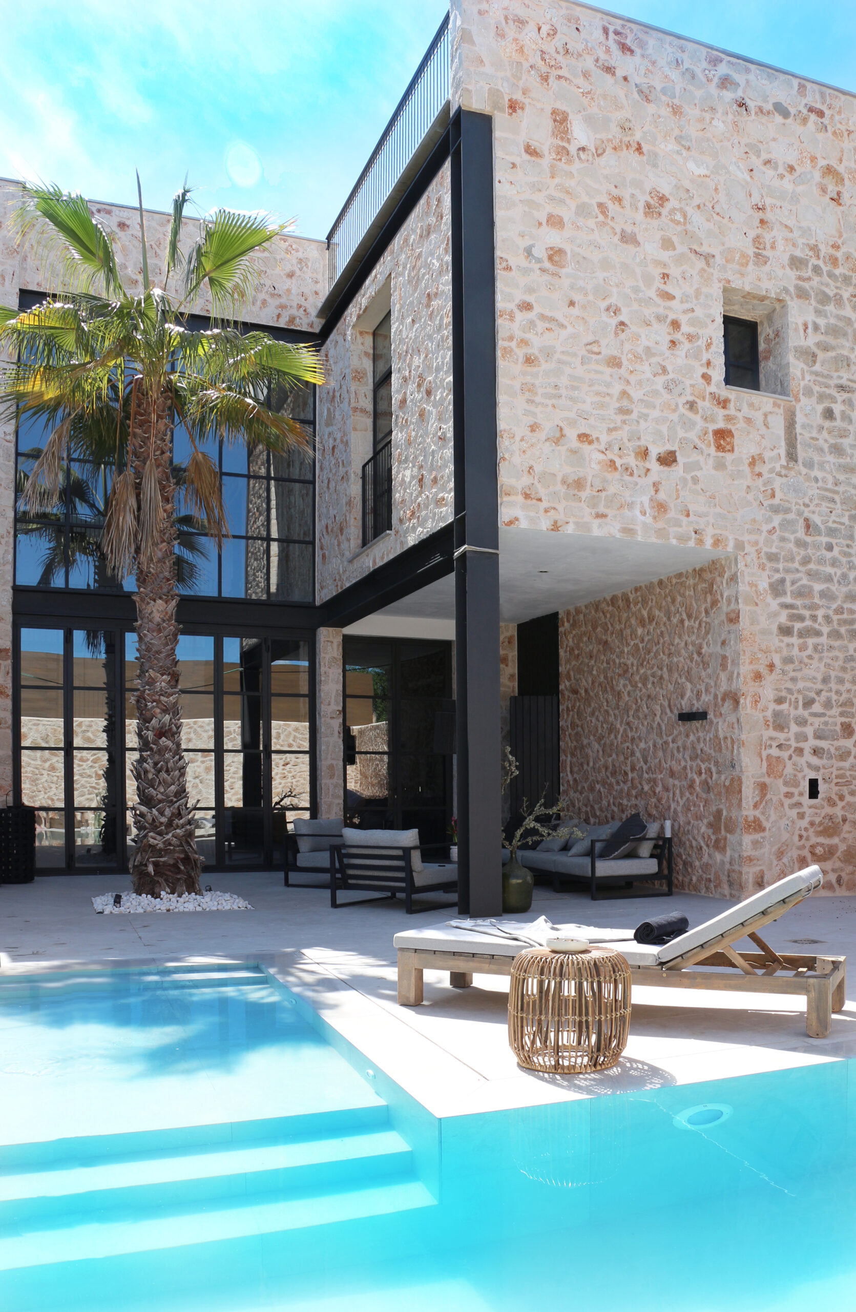 A true Mediterranean lifestyle is well catered for at Suga House, with enviable outdoor spaces. The large terrace offers both covered and uncovered areas to lounge, with an aquamarine pool to cool off from the Mallorcan heat. The rooftop terrace provides the perfect vantage point to gaze over the Santanyi township and majestic Tramuntana mountains beyond. Fully equipped with a barbecue and outdoor kitchen, it’s the ideal spot to while away summer evenings with good friends and good food. Suga House is a prime example of successfully merging design. Traditional Mallorcan architecture meets contemporary architecture, meets New York loft in perfect harmony to equal a sum much greater than its parts.