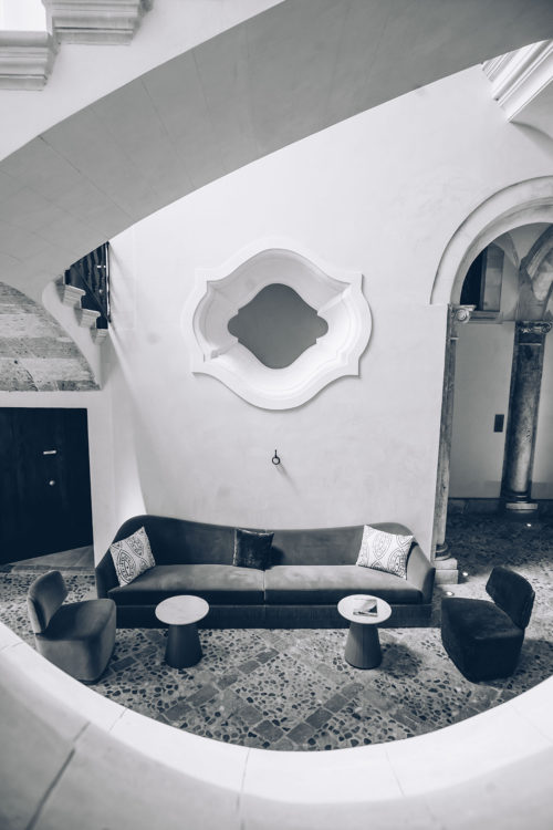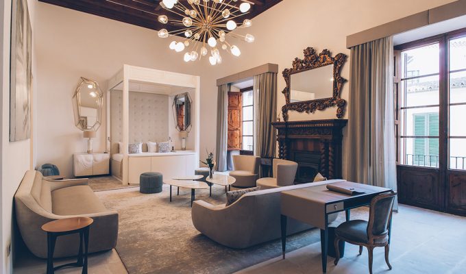 The surrounding birdsong pulls us back to Palacio Can Marques and when we express our admiration for its design, there is a softer, more heartfelt pause. “Can Marques is my…” She searches for the words but struggles, slipping into her French native tongue. She sighs “…well, it comes from meeting Kim”. The conversation now has a different tone, as her far-flung travels fade into the background. She talks of when Kim first bought Palacio Can Marques, and how at first, he was living in one room. Her eyes widen. “[‘I told him] this would be great as a boutique hotel’ and he said ‘never.’” We laugh, as she gestures at what now is one of Palma’s grandest places to stay. We ask what her signature suite is, and she doesn’t waver: ‘Renaissance’. She describes a painting that hangs there of a couple rushing through an art gallery. Her love for it is no surprise. The pace, the freedom and the world spinning in the background. It all comes together, much like one of her mood boards. Aline, Kim and the world.