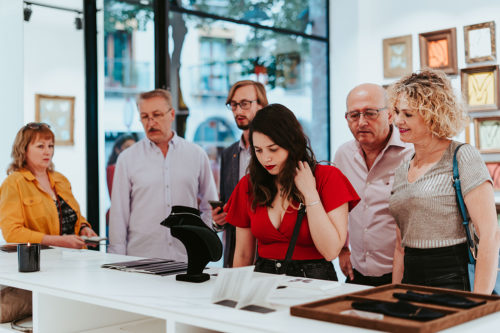 Chilled beverages were available outside where guests pondered and chatted over Isabel’s beautiful collection. Gallery Red were proud to host such an event and are looking forward to having Isabel’s designs in store alongside their other luxury accessories.