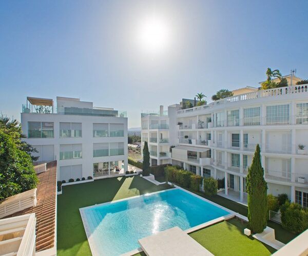 Penthouse in Portocristo with three en-suite bedrooms, private terraces, communal pool, and underground parking.