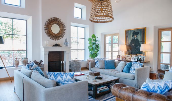 To ensure a unique personality for each home, she favours custom-made furniture and fabrics, some of which she acquires from her interior design store, Bluebird. She loves to upcycle, a skill which she learned from her creative mother. She points out chairs she has had specially upholstered in Mallorcan artisan fabric, and the floor tiles which were salvaged from another house. Only the best-quality materials will do.