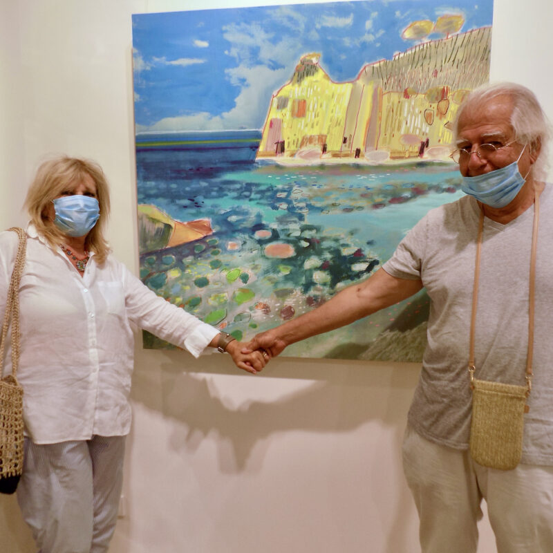 ”Over the five wonderful years I’ve lived on the island, the way I paint or approach a painting, has developed and still changes from day to today. This new collection of paintings show a broader way than usual, how I think and look at the world around me. Like the weather and the seasons, I have cloudy days, rainy days and sunny days. This can manifest itself in different ways, from subtle hues to hard lines, representative to abstract marks, all in one painting.”