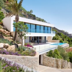 Tucked into the lush hillside of Santa Ponça and perfectly oriented to the south, this extraordinary villa captures the essence of Mediterranean design. With panoramic 180-degree sea views and a structure that blends effortlessly into its environment, it offers a sophisticated yet sustainable retreat.