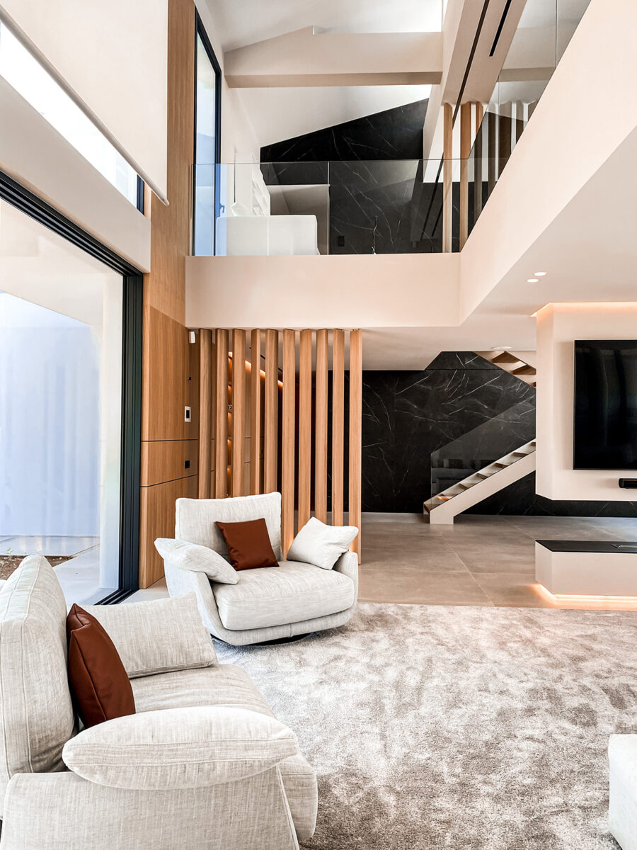 Behind the installation is Estel, a business founded in Palma de Mallorca in 1995 and that has since delivered more than 1,300 projects in 15 countries. Their Esteldome home automation wing ensured that this luxury-level home features the very latest cutting-edge smart tech. They chose the E2 Black Matte system from domotics experts Gira, to integrate perfectly with the smart, contemporary look of the interiors