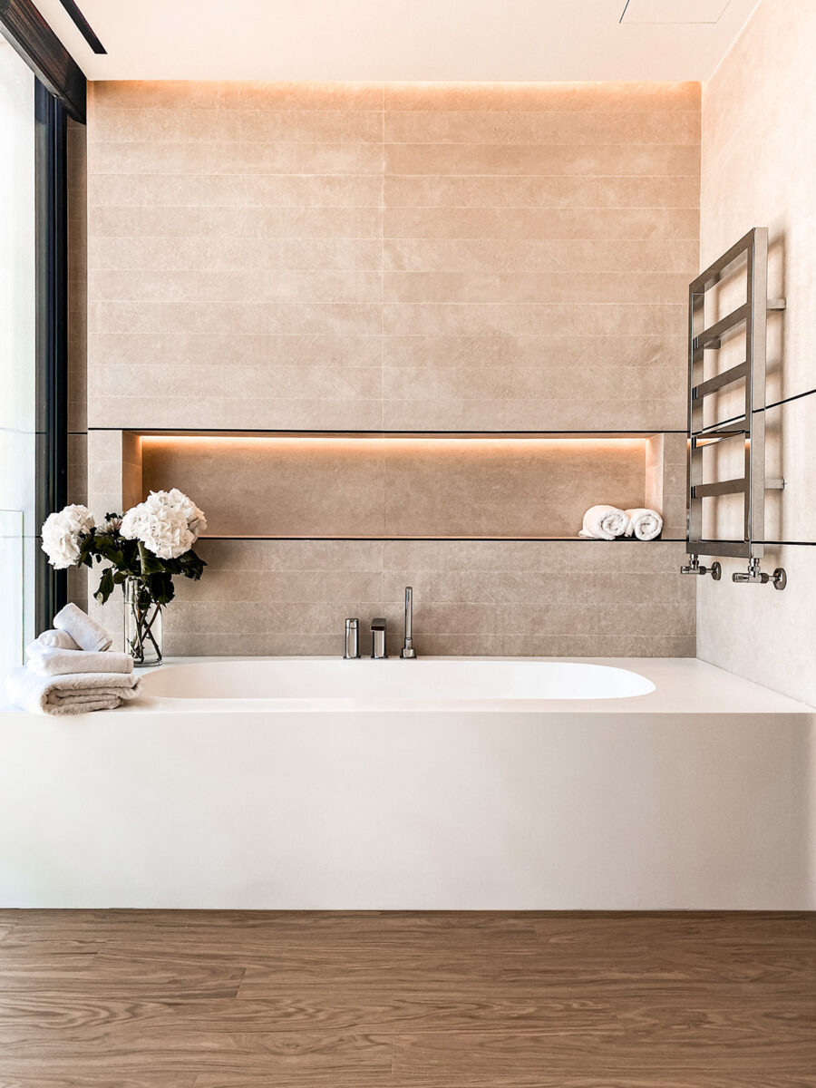 It allows fully remote control via smartphone or tablet of everything from air conditioning and underfloor heating to lights and blinds. The ambience of each space can also be pre-programmed depending on the time of day or desired mood. When the owner is away, they have remote visualisation of their home, can set intruder alarms and even simulate occupation.