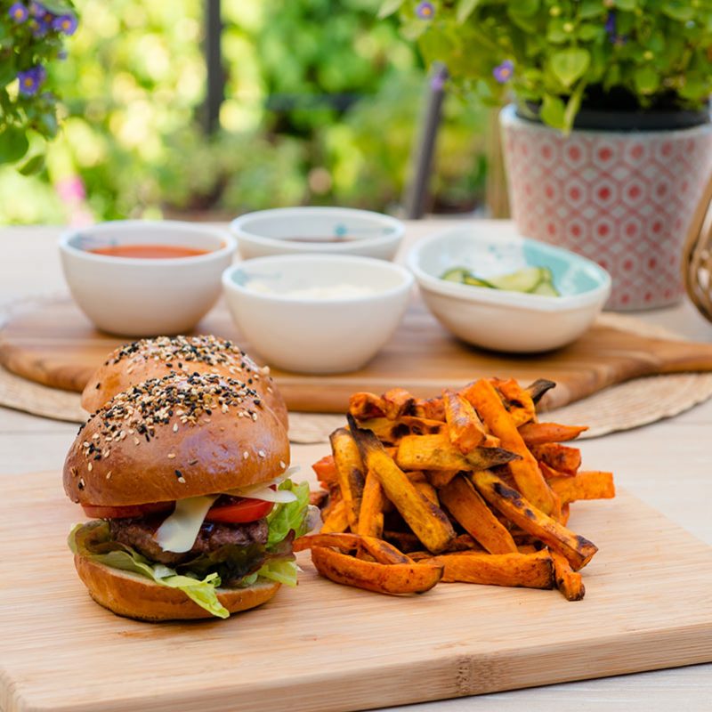 As well as using good quality meat, keep it coarsely ground – so only mince it once. Ensure your barbecue is nice and hot, lightly oil the burger before putting on the grill, and don’t move it too much when cooking. If it sticks it’s not ready to be flipped!