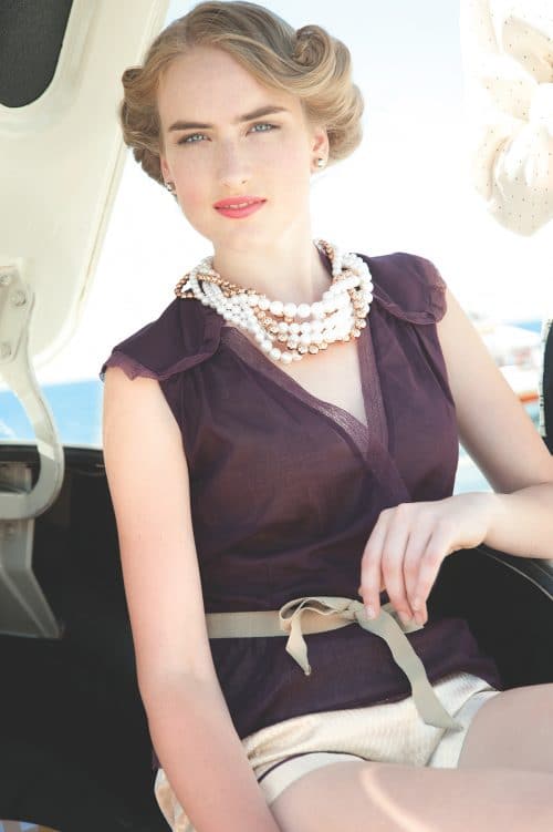 Jennifer Jane created a classical make-up look for the models to complement the elegant style of the era. The spectacular hair style was created by Monika Hübert.