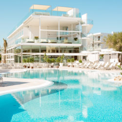 The spectacular avant-garde design of the Monsuau 110-bedroom 4-star hotel makes it hard to believe that the property was originally built in 1971, as the former Hotel Tamarix, in the Cala Ferrera area of the popular holiday destination Cala d’Or. The hotel’s Spanish owners gave it a sparkling contemporary makeover and new concept, to create the perfect place for clients looking for something different, in every respect, to the type of holiday accommodation usually found in family resorts.