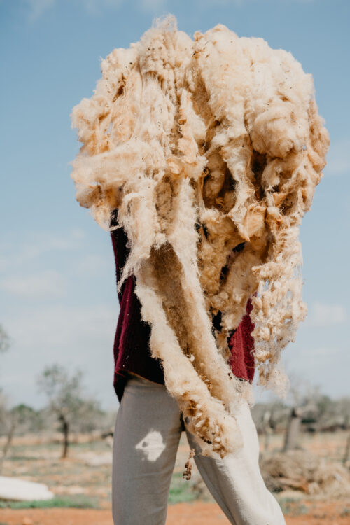 After studying fashion in Barcelona in 2014, Adriana returned to her home island of Mallorca. She originally grew up in Cala Llombards in the small coastal town of Santanyí to a family of American and French descent. Her background in fashion had already planted the seed for working with fabrics, but it was an off-day looking at a sheared sheep’s coat that changed everything. “It was led out on a chair and I just remember looking at its shape and form. The way it folded over the arms of the chair intrigued me.” Sheep’s wool is one of Adriana’s primary materials, which she washes, dries and styles into shape and then attaches to canvas. The same technique is applied to rope, grass and leaves too, which Adriana can spend up to three weeks braiding into artwork.