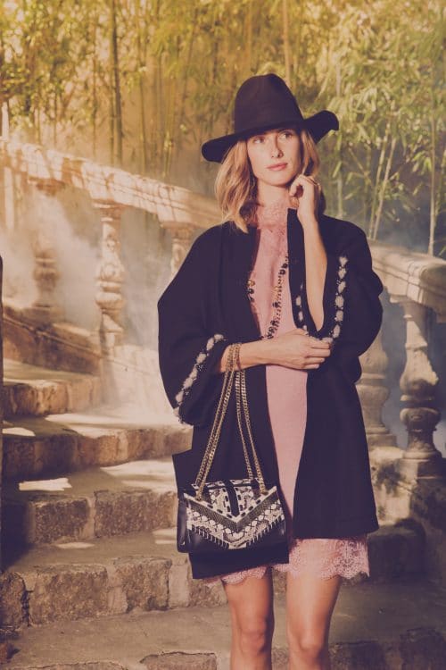 Accessories are key. Big leather statement bags are arm candy. Kidama stocks Roberto Cavalli and we love the leather fringe bag in black or pink. Mix and match your patterns with confidence and add a feather or fake fur coat or sleeveless jacket to top the look.